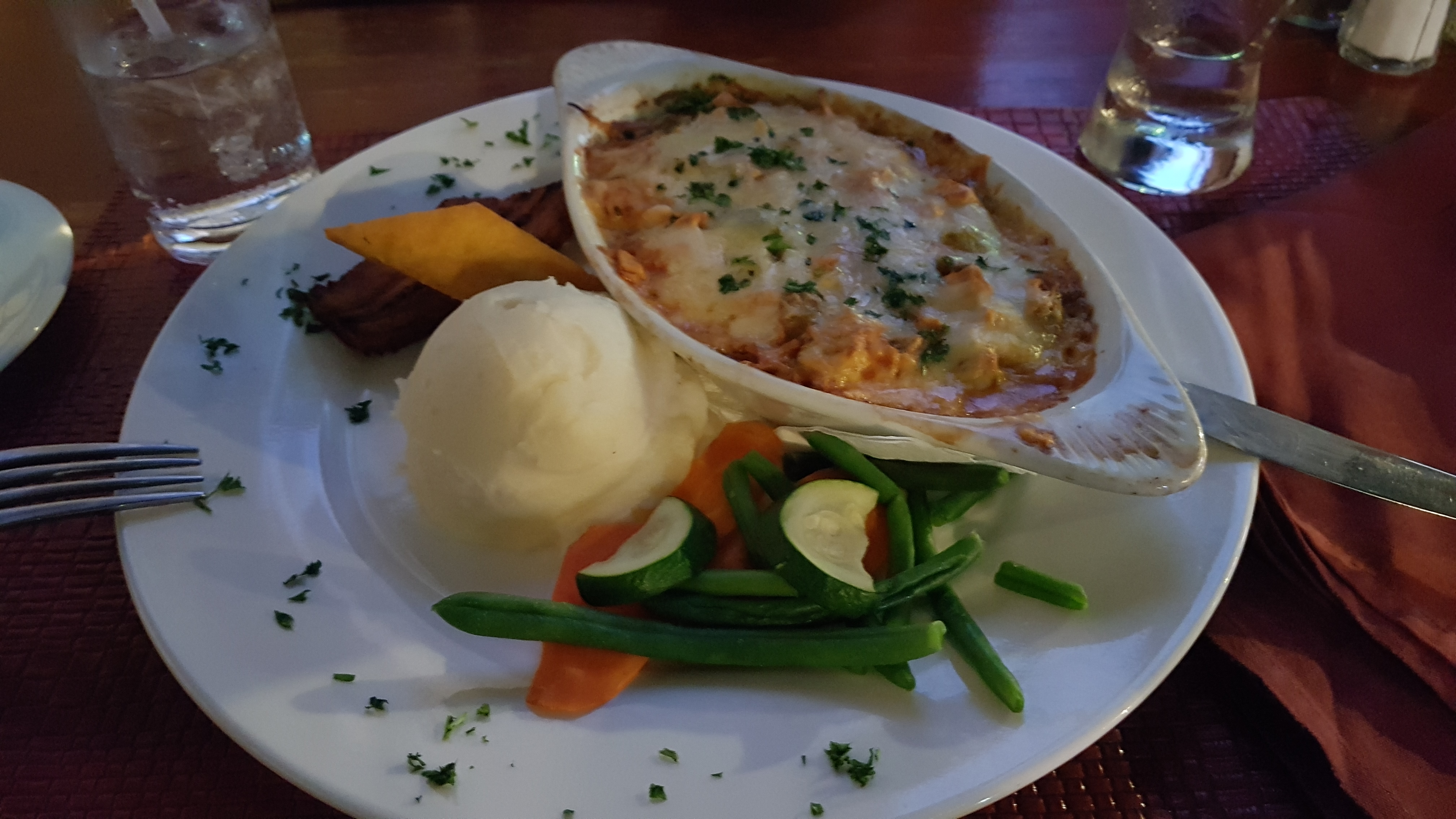 Abendessen in The old Cunucu House – traditionelles arubanisches Essen. Zumindest für Andi. ?